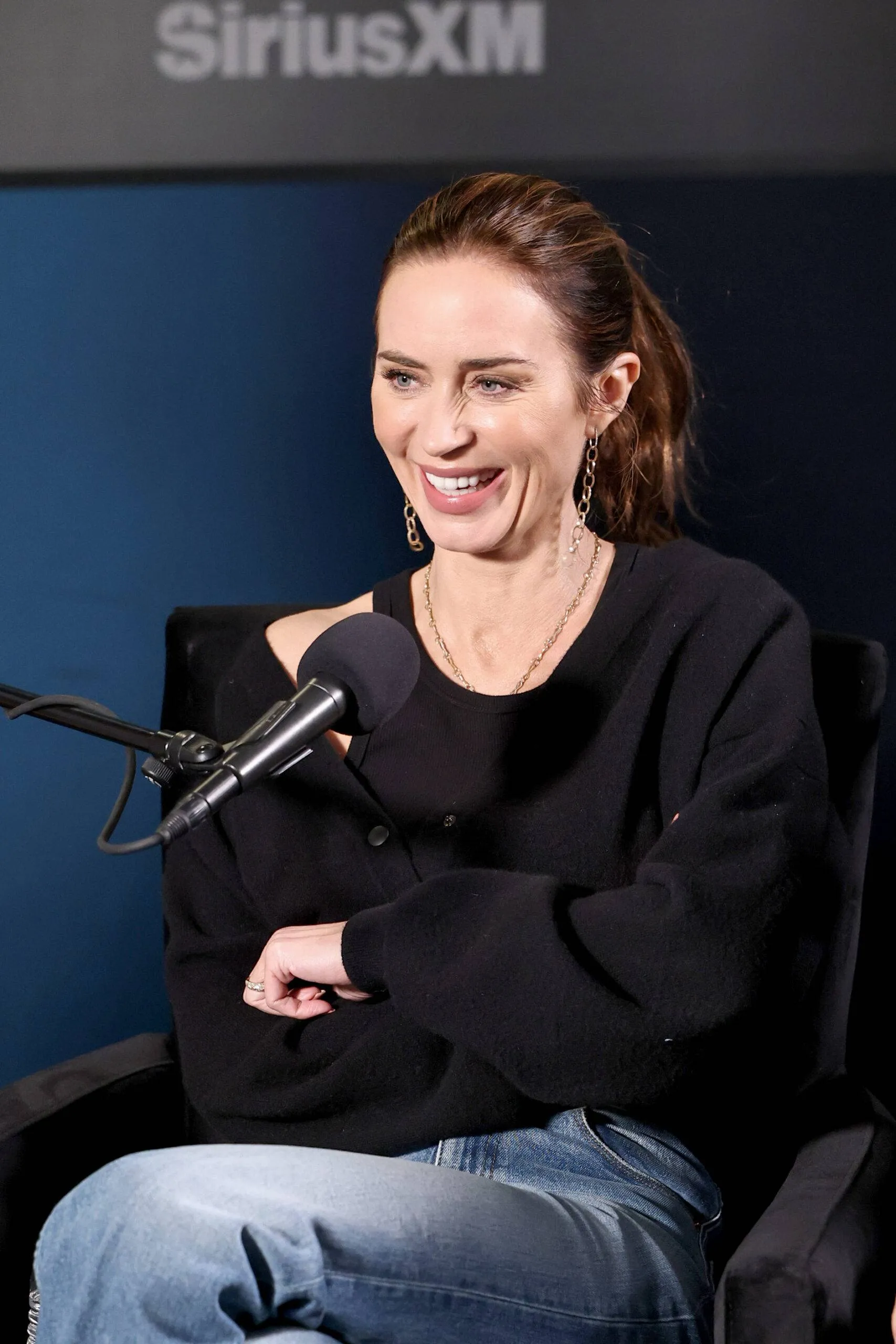 NEW YORK, NEW YORK – OCTOBER 02: Emily Blunt seems on SiriusXM’s ‘Sway In The Morning With Heather B And Tracy G.’ at SiriusXM Studios on October 02, 2025 in New York Metropolis. (Picture by Jamie McCarthy/Getty Pictures for SiriusXM)