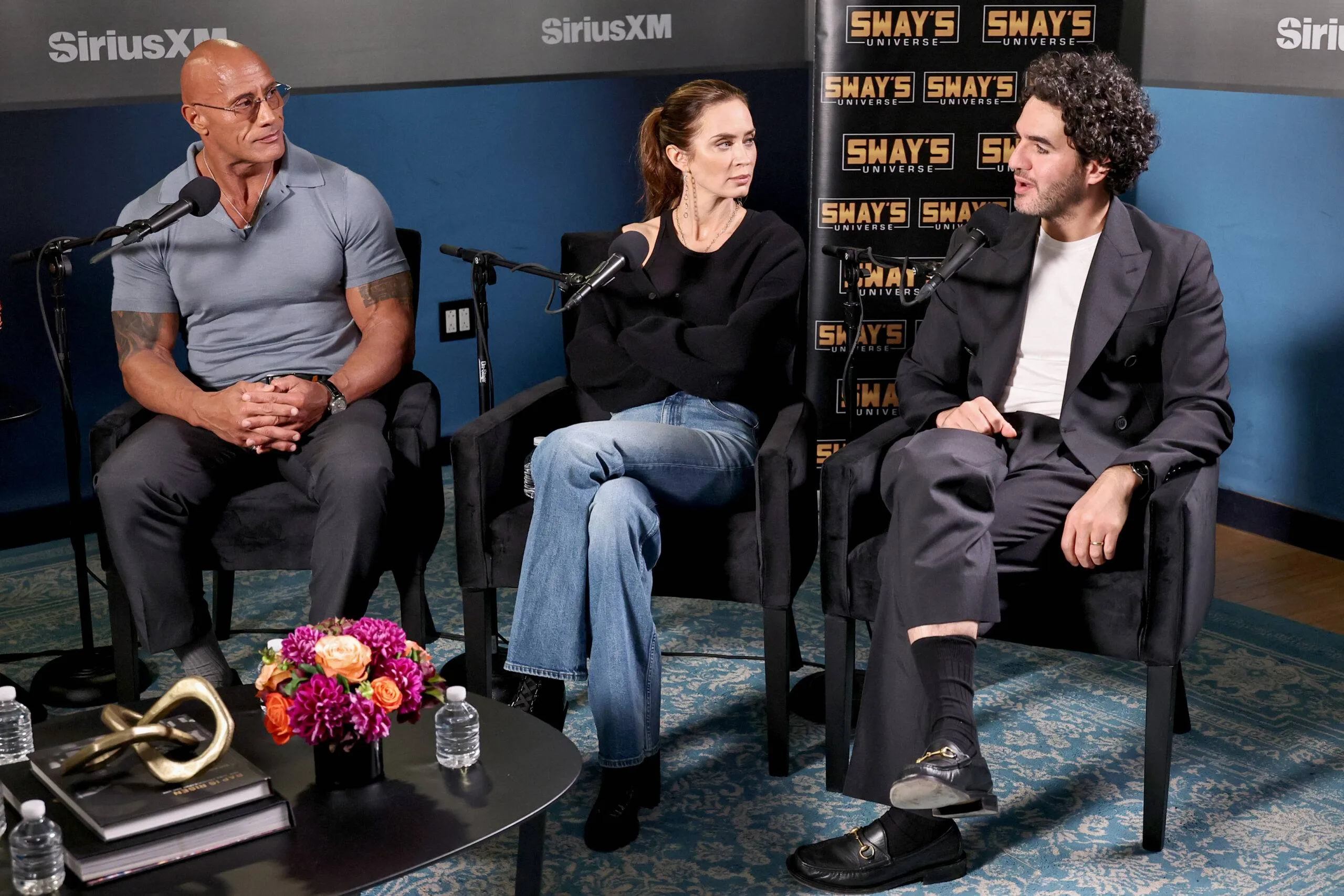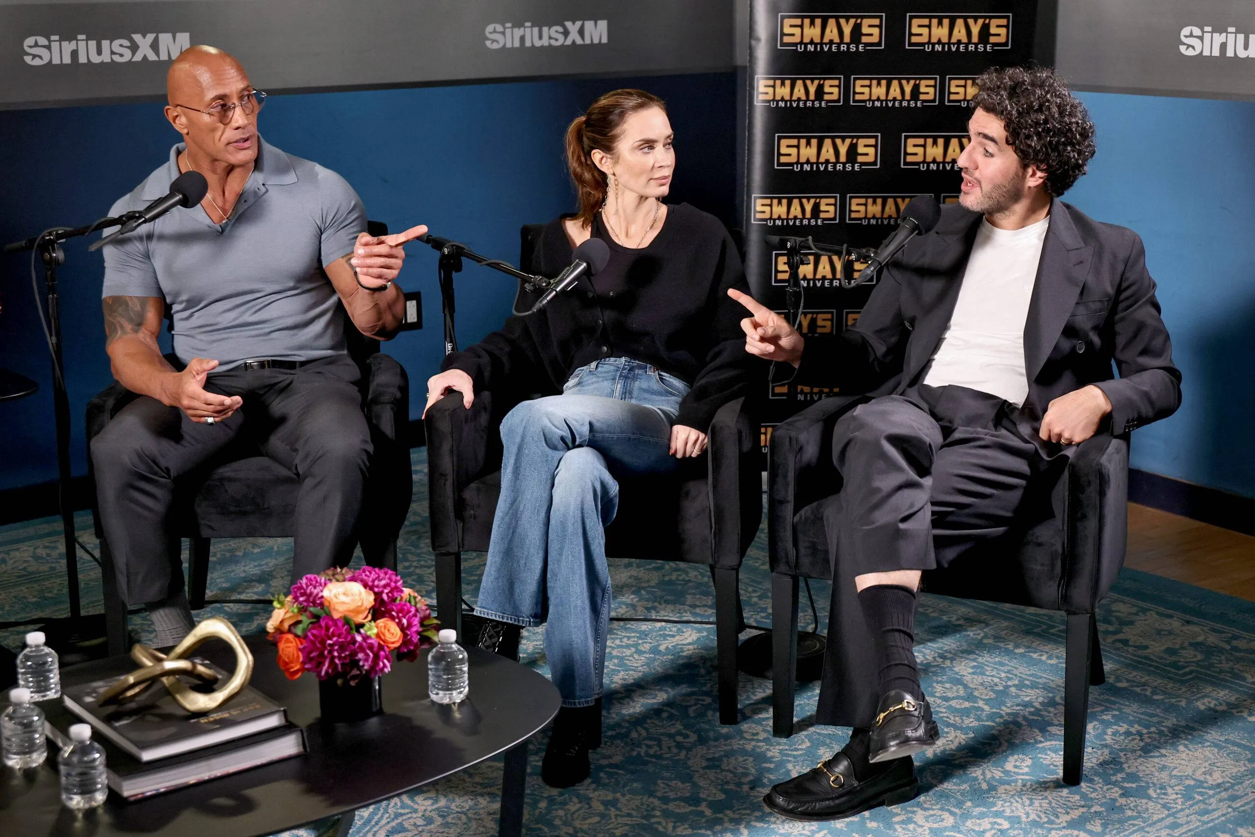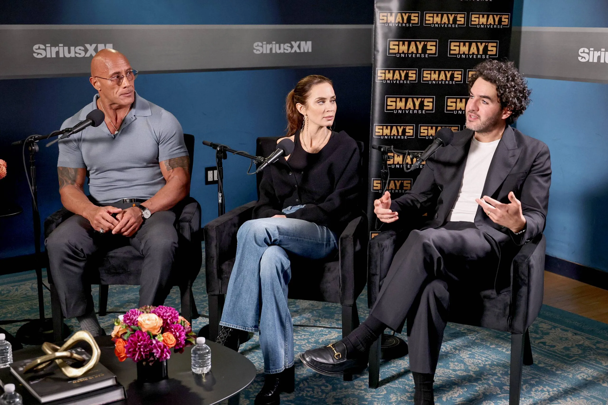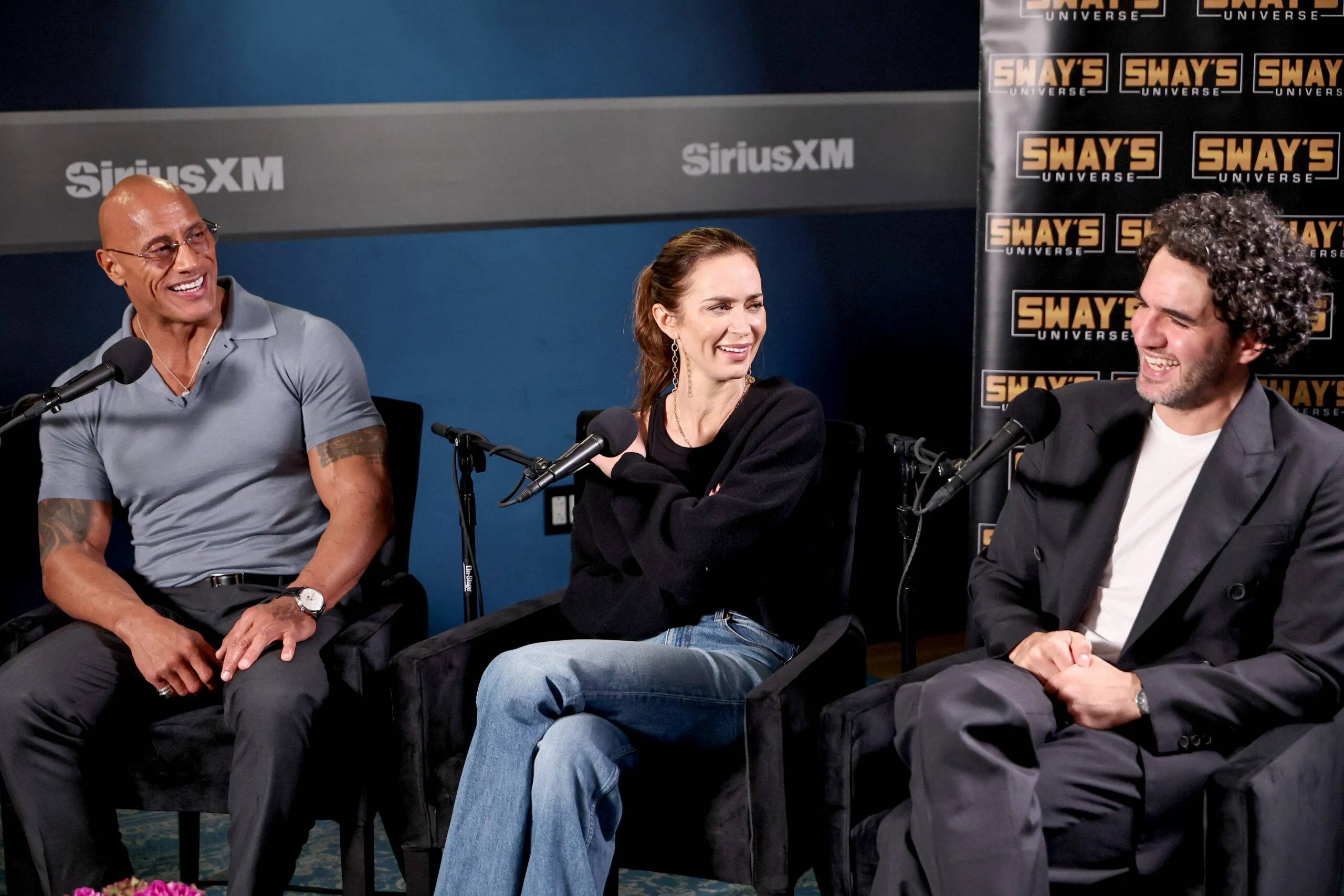 Dwayne “The Rock” Johnson, Emily Blunt, and Benny Safdie seem on SiriusXM’s Sway within the Morning.