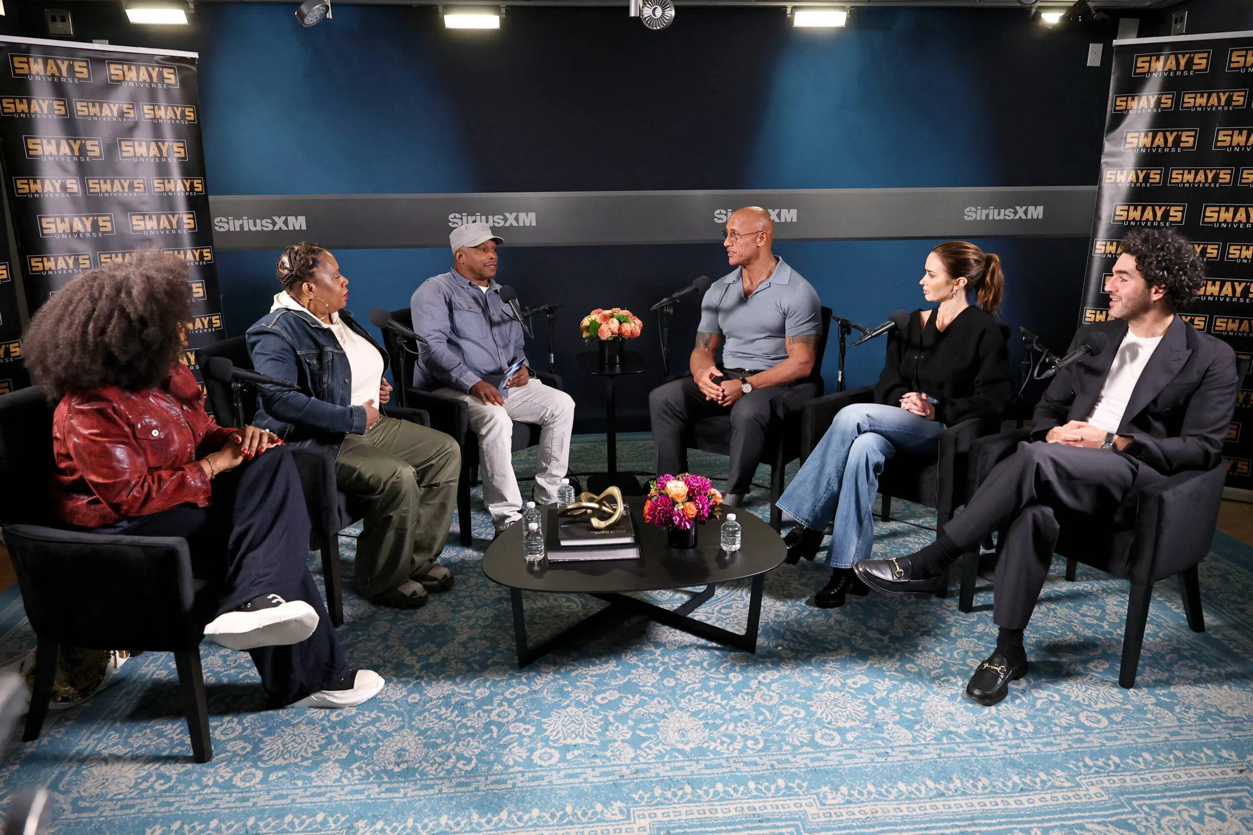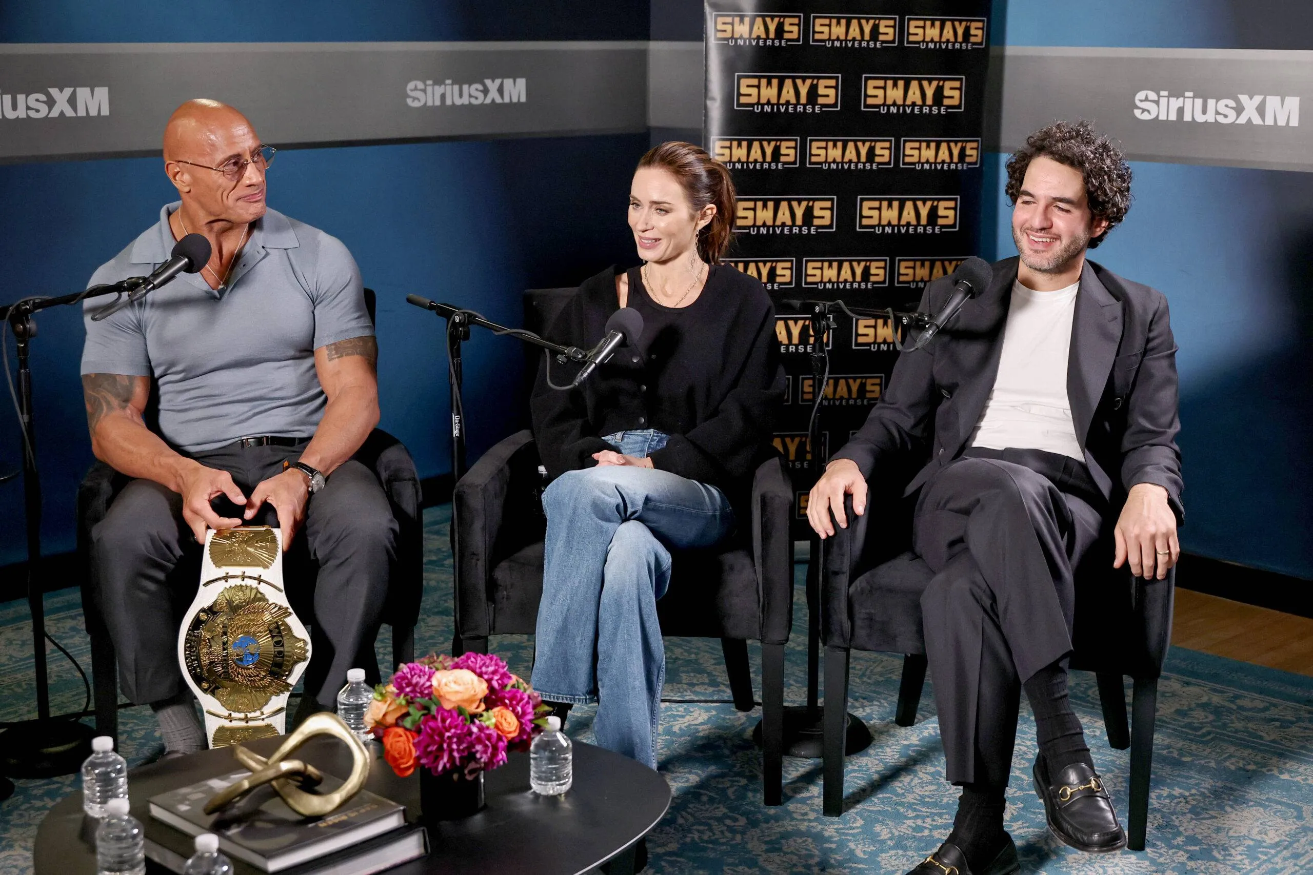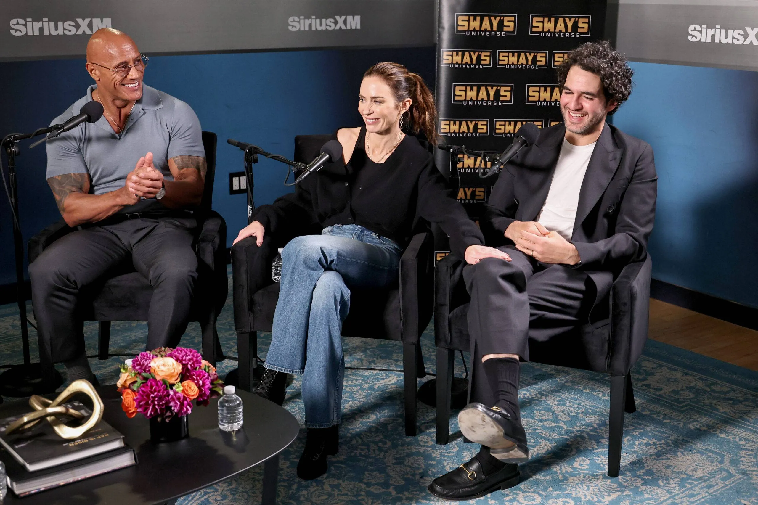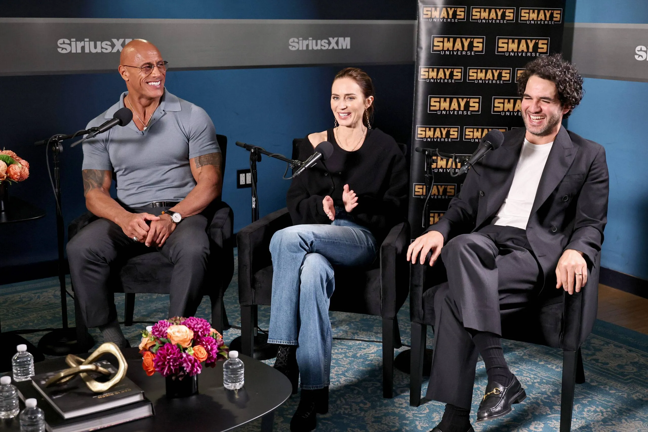 Dwayne “The Rock” Johnson, Emily Blunt, and Benny Safdie seem on SiriusXM’s Sway within the Morning.
