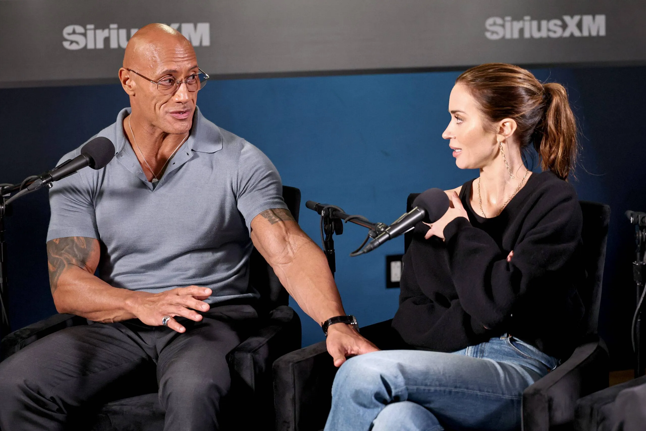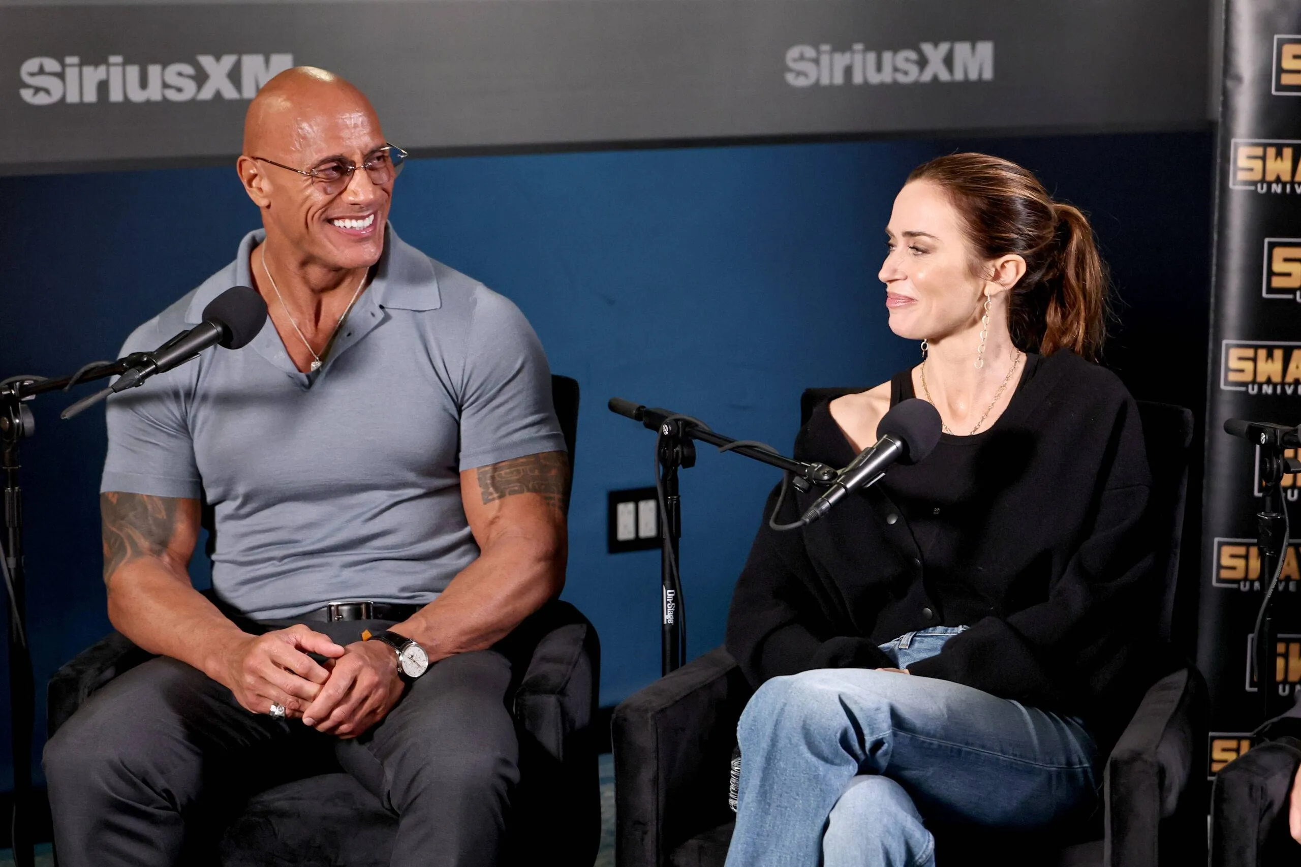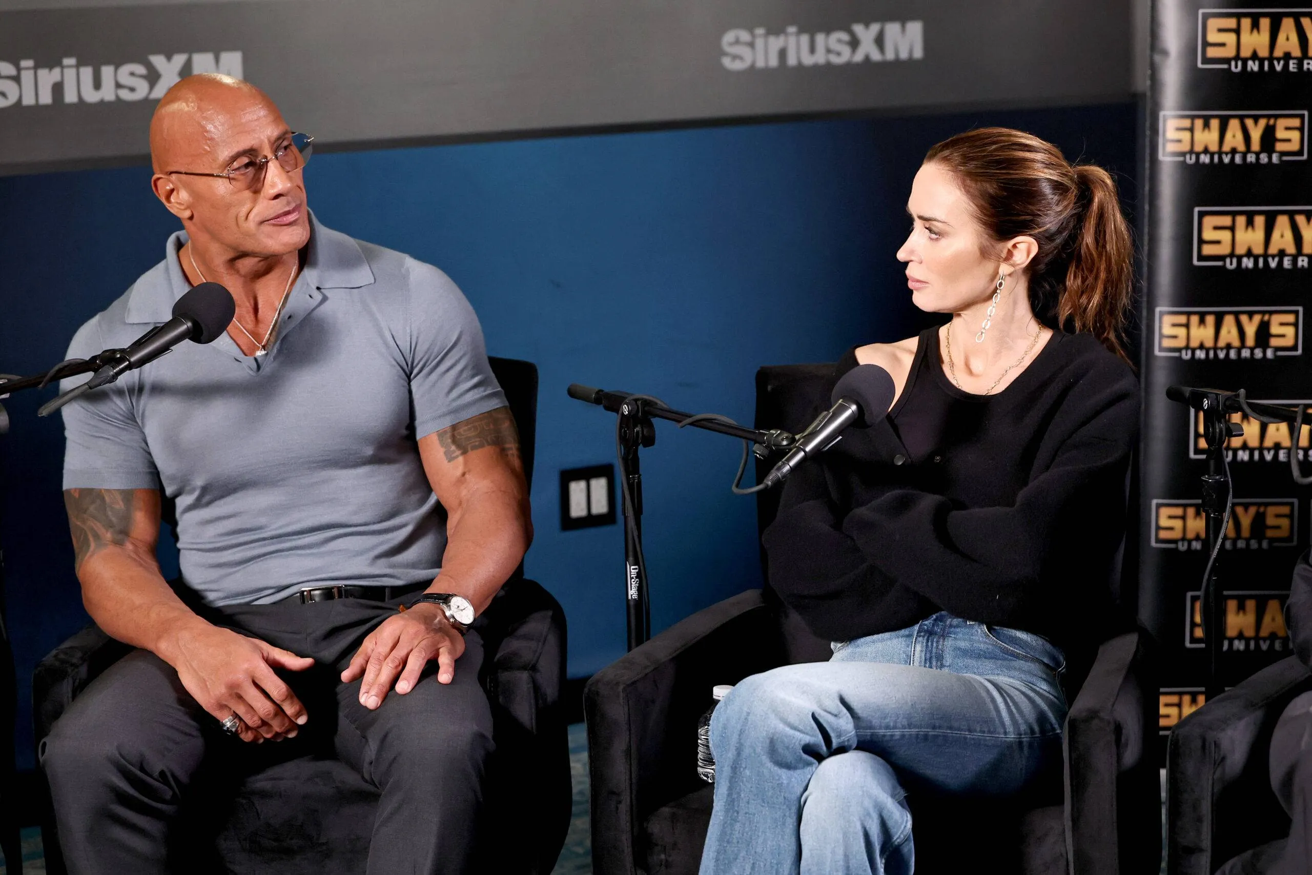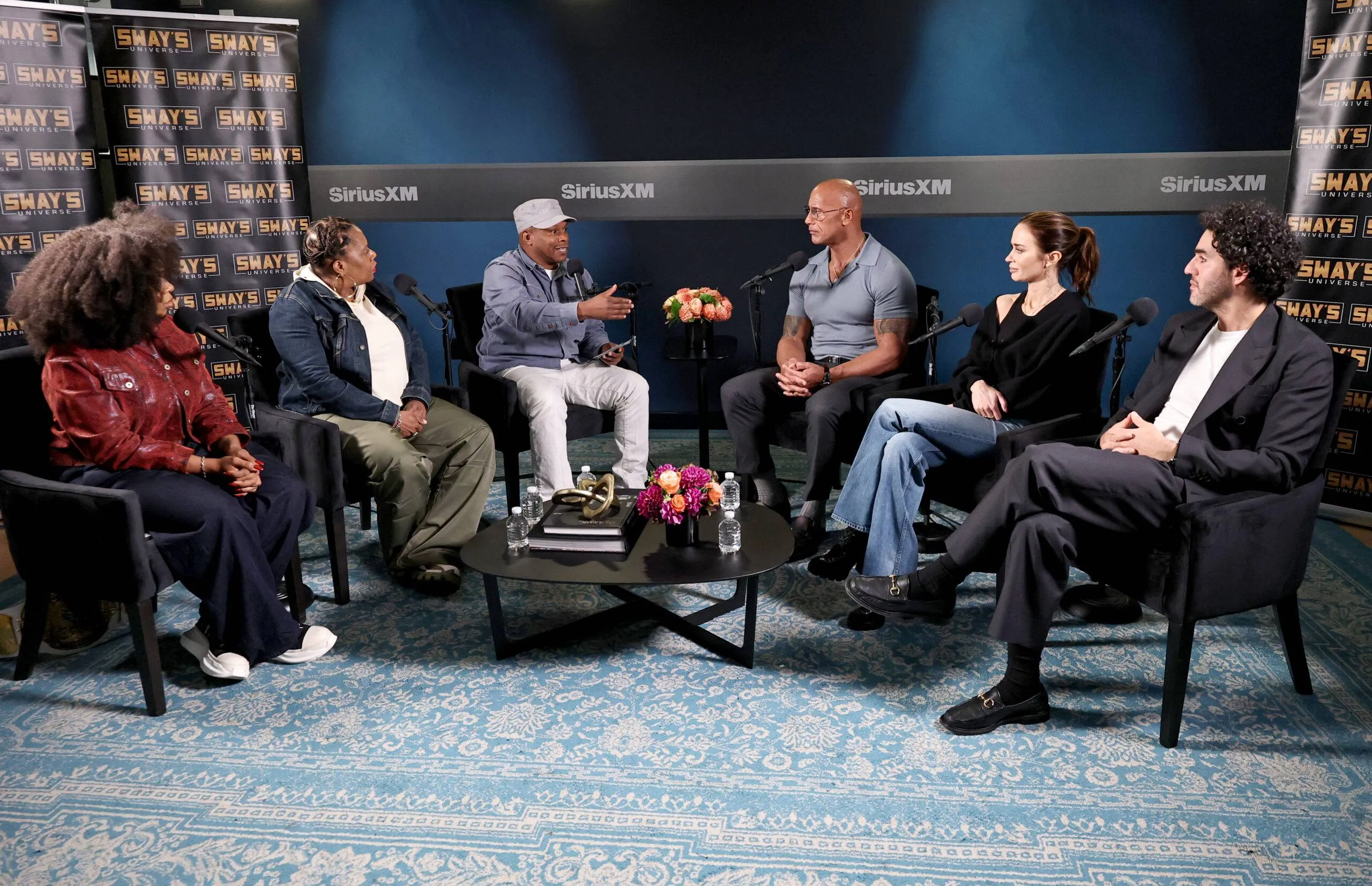 Dwayne “The Rock” Johnson, Emily Blunt, and Benny Safdie seem on SiriusXM’s Sway within the Morning.