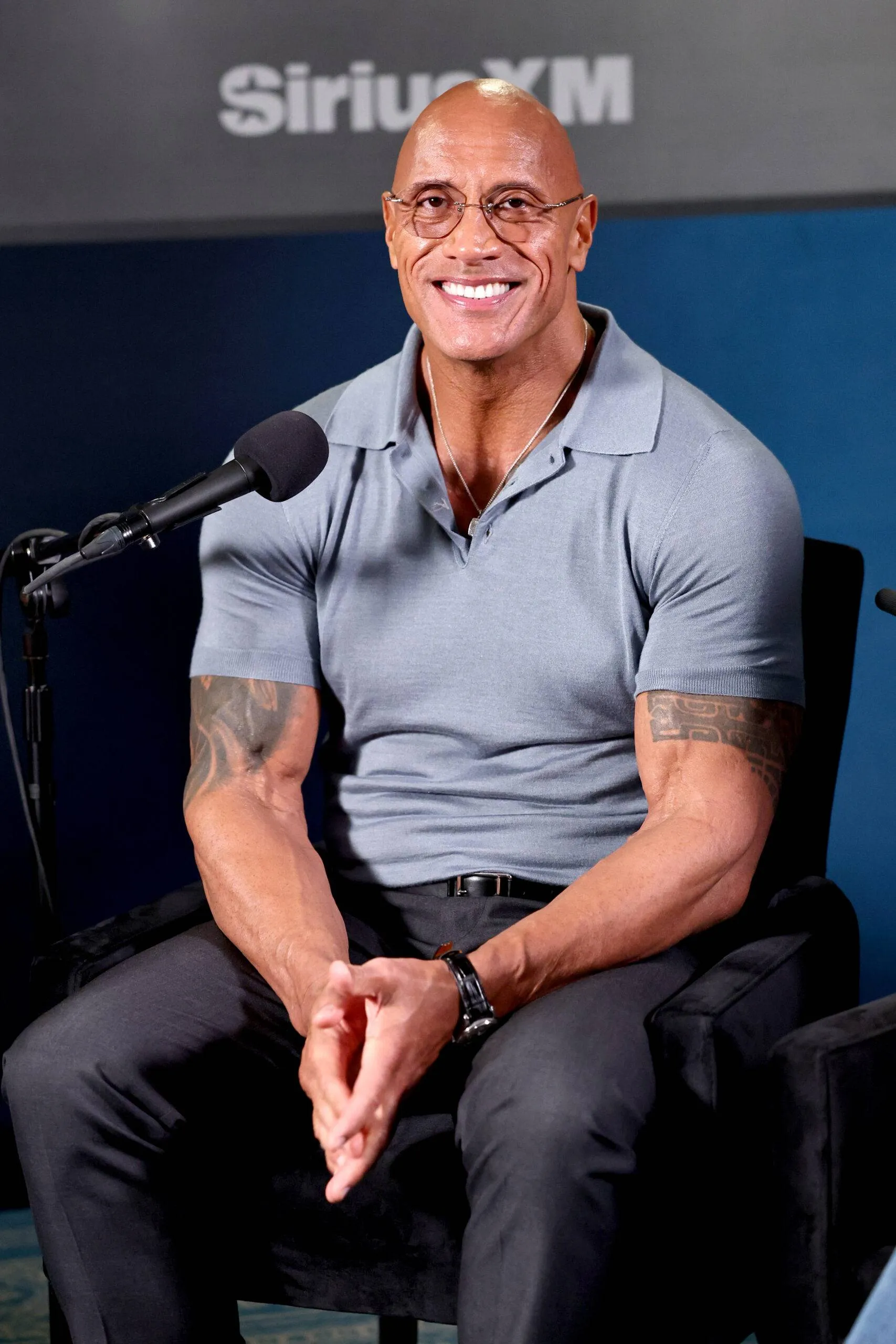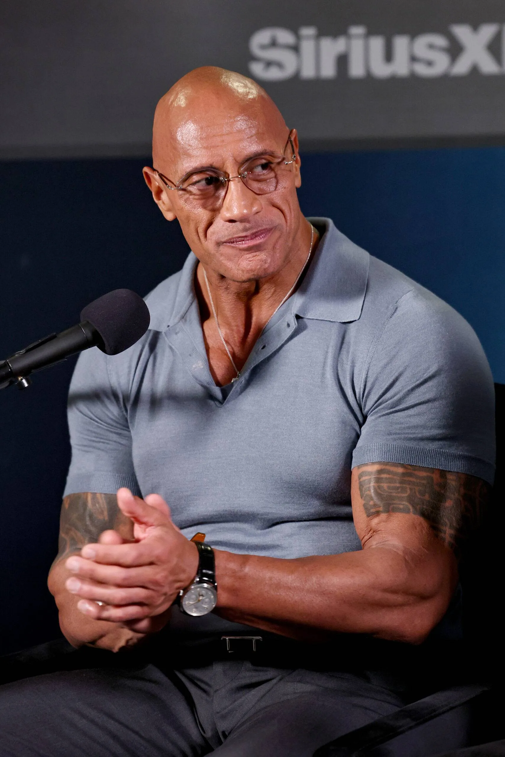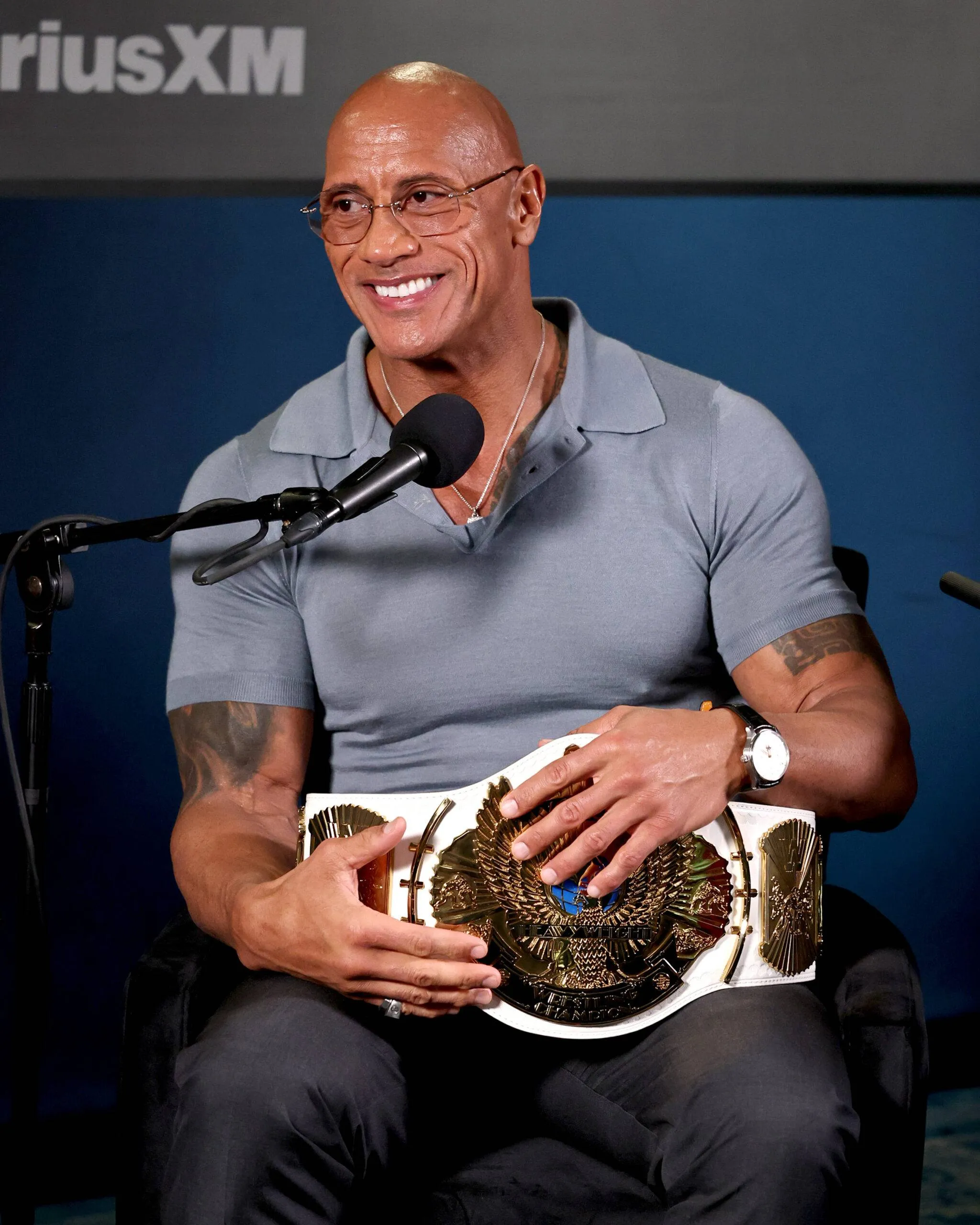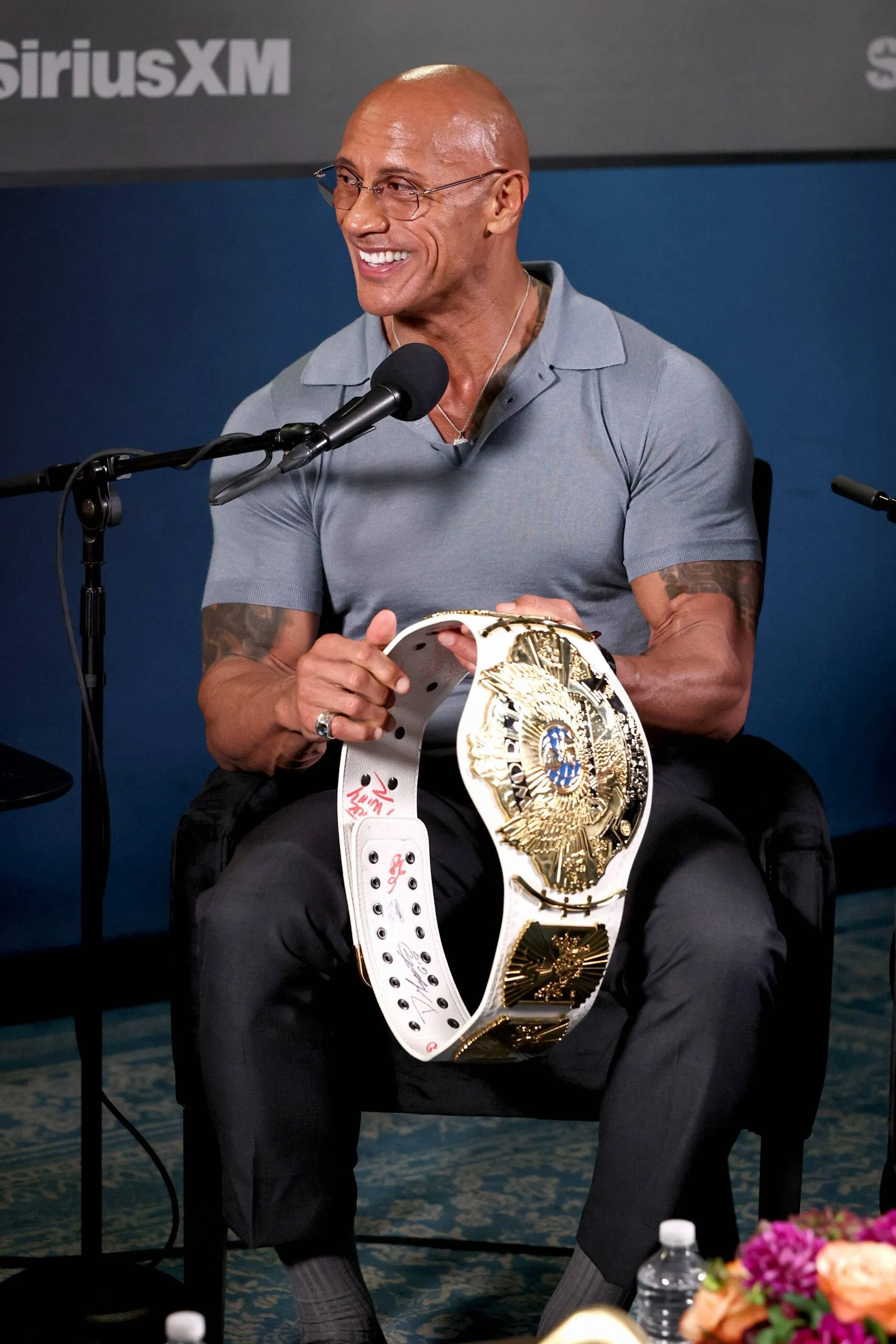 NEW YORK, NEW YORK – OCTOBER 02: Dwayne Johnson seems on SiriusXM’s ‘Sway In The Morning With Heather B And Tracy G.’ at SiriusXM Studios on October 02, 2025 in New York Metropolis. (Picture by Jamie McCarthy/Getty Pictures for SiriusXM)