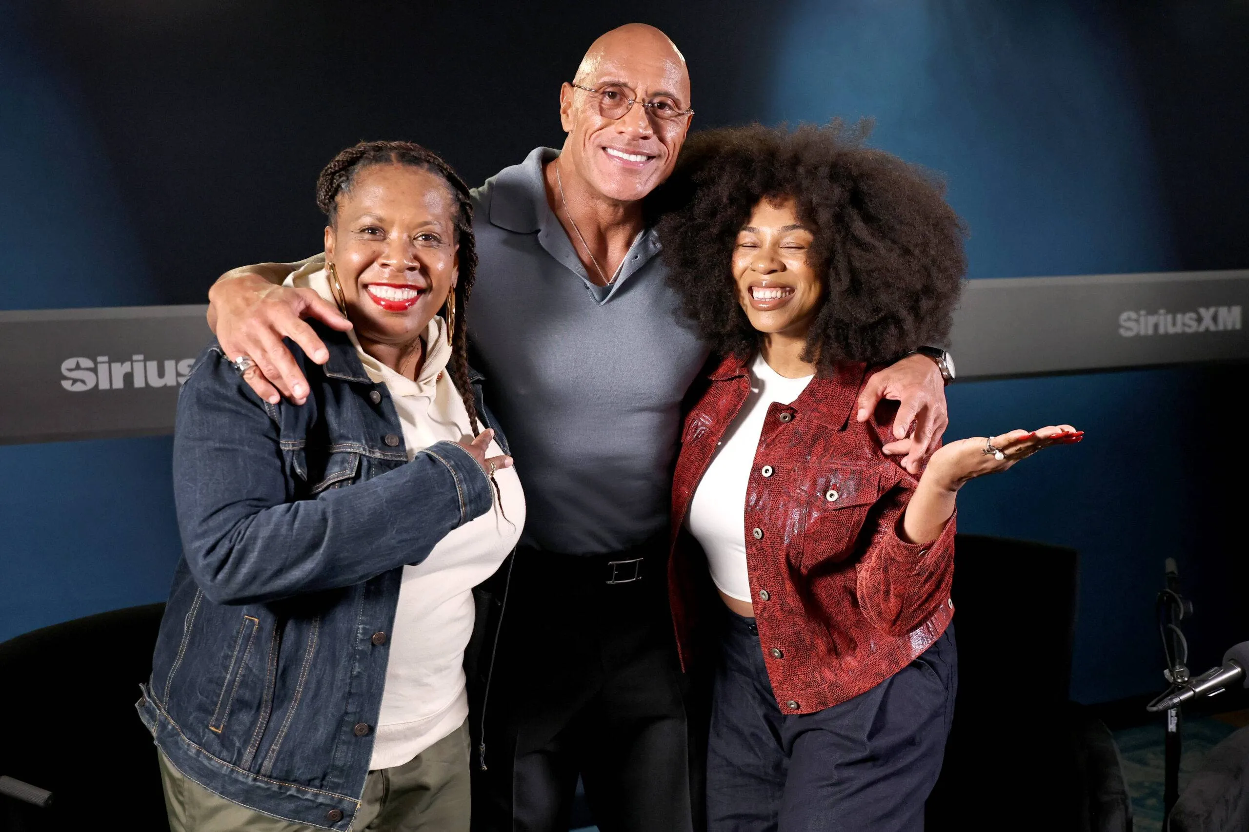 NEW YORK, NEW YORK – OCTOBER 02: (L-R) Heather B, Dwayne Johnson, and Tracy G. attend SiriusXM’s ‘Sway In The Morning With Heather B And Tracy G.’ at SiriusXM Studios on October 02, 2025 in New York Metropolis. (Picture by Jamie McCarthy/Getty Pictures for SiriusXM)