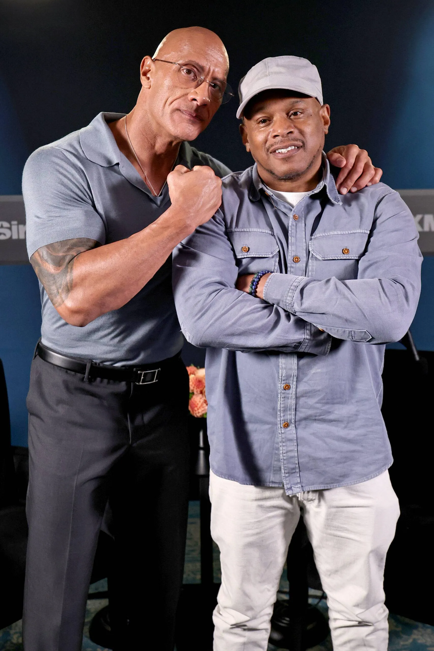 NEW YORK, NEW YORK – OCTOBER 02: (L-R) Dwayne Johnson and Scott Greenstein attend SiriusXM’s ‘Sway In The Morning With Heather B And Tracy G.’ at SiriusXM Studios on October 02, 2025 in New York Metropolis. (Picture by Jamie McCarthy/Getty Pictures for SiriusXM)